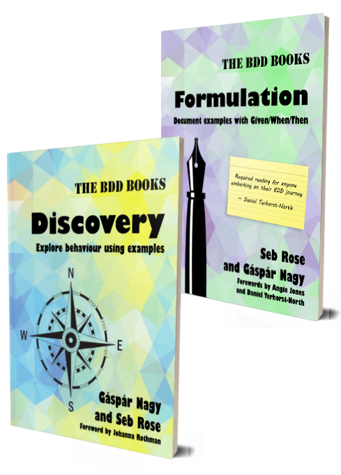 Seb: These books don't simply document what we've done, or what other people have done ⁠–⁠ they’re part of the evolution of BDD. Gáspár came up with the term “formulation” around six years ago, and no one had used it in this way before. In fact, when we called the great and the good of the BDD world together, there was a lot of pushback against the term. People wanted to call it specification or whatever. We said, fine, everyone do what they want, but we carried on calling it formulation, and that's the word that stuck. So yeah, go us! Go Gáspár!